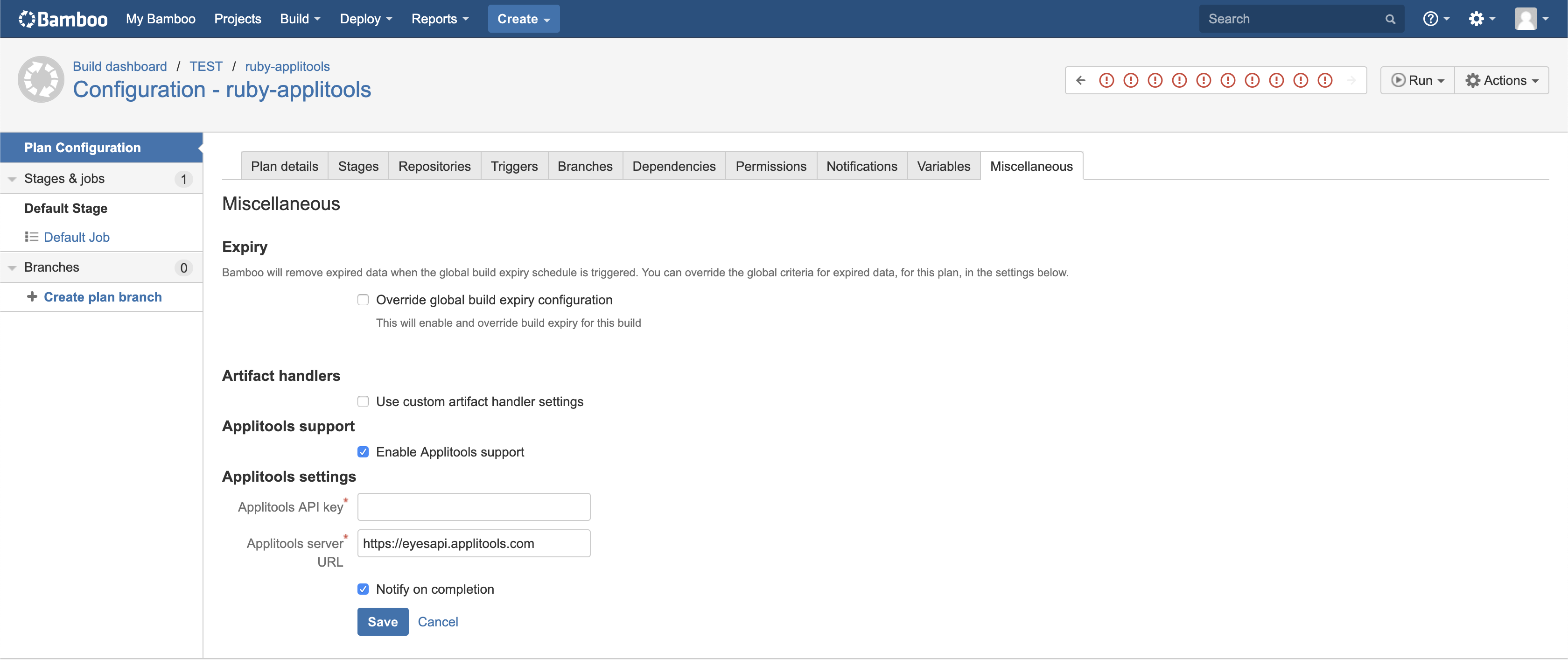 This article explains how to install and use the Applitools Eyes plug-in for the Atlassian Bamboo CI system.