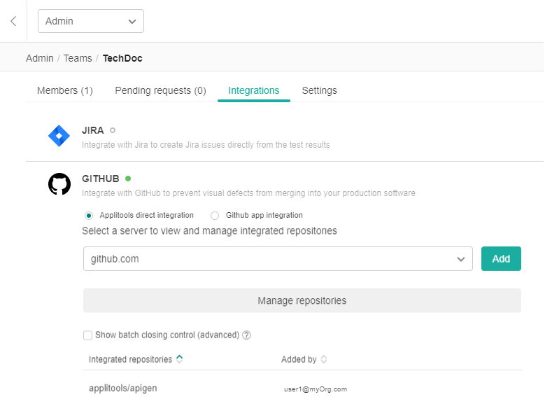 - If you disable automated batch closing for a repository, you need to ensure that the CI notifies Eyes when all of the concurrent builds are complete so that Eyes can then close the batch. For details see Configuring your CI for the GitHub integration.