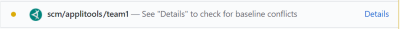 On the far left of each row, the merge status can show a value of Conflict, indicating that the baseline requires user intervention.