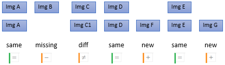 Instead of having a static association between every checkpoint and a corresponding baseline image, Eyes compares a sequence of images captured by checkpoints to a sequence of baseline images, allowing for the fact that checkpoints may have been added or removed. Then, very much like a textual "diff" program, Eyes finds images that have been added or removed as well as images that have a corresponding baseline image and either match or mismatch. Eyes then enables you to both verify existing checkpoints and ensure that the set of baseline images is up to date.