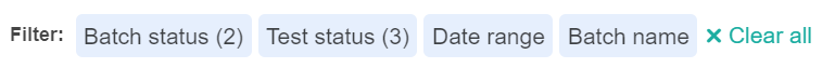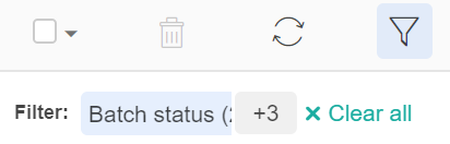 You can clear the filter by clicking the Clear all button. If you do this, the most recent set of batches is displayed in the batch list.