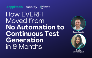 Webinar How EVERFI Moved from No Automation to Continuous Test Generation in 9 Months See and hear about EVERFI’s journey to generating targeted tests automatically from changing system schemas in this webinar with Applitools, CircleCI, and Cypress.