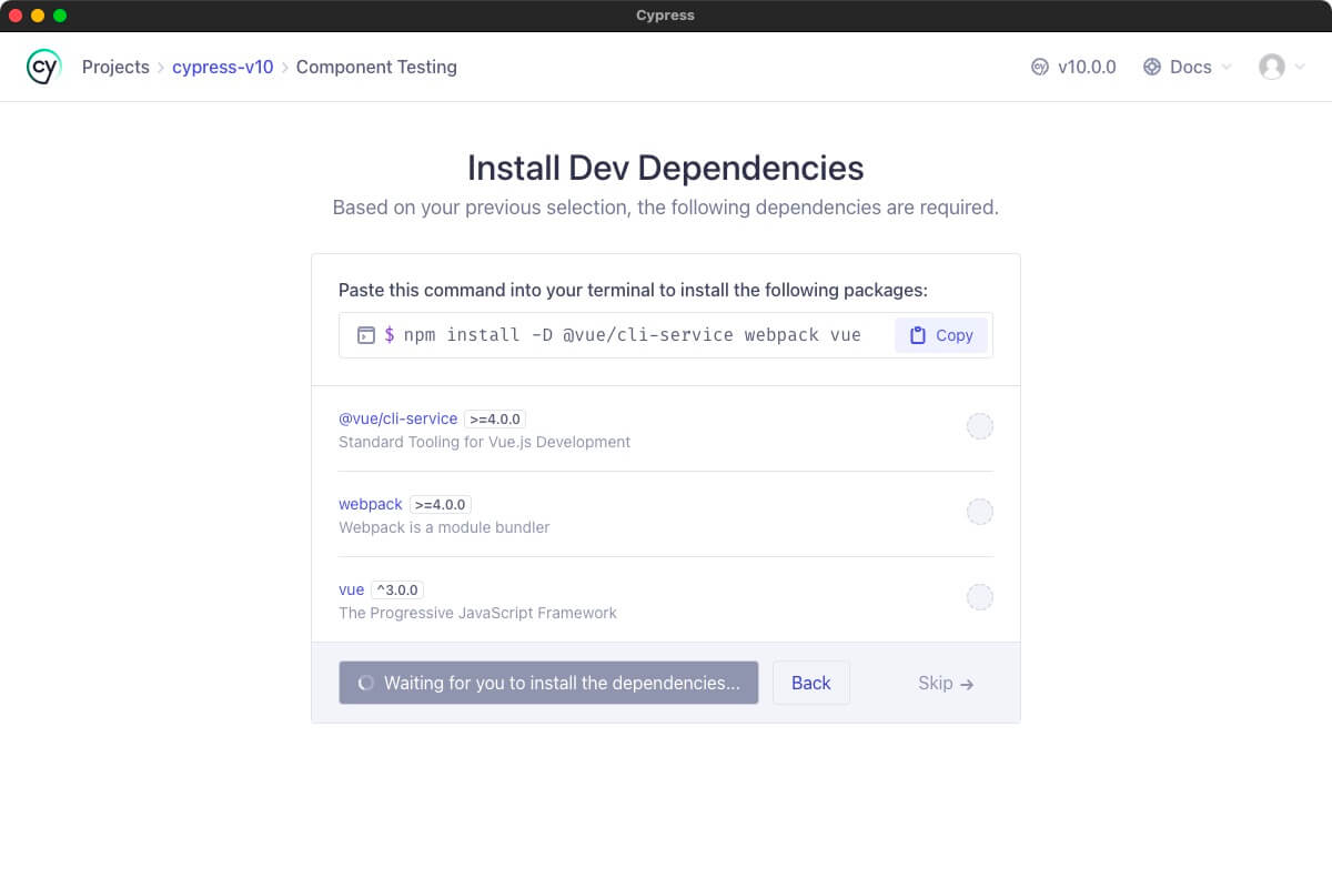 If you are just getting started with component testing, Cypress has got you covered. They have included a really nice setup wizard to help you setup your project for component testing. This will help you install the dependencies you’ll need and set up your cypres.config.js configuration file for you.