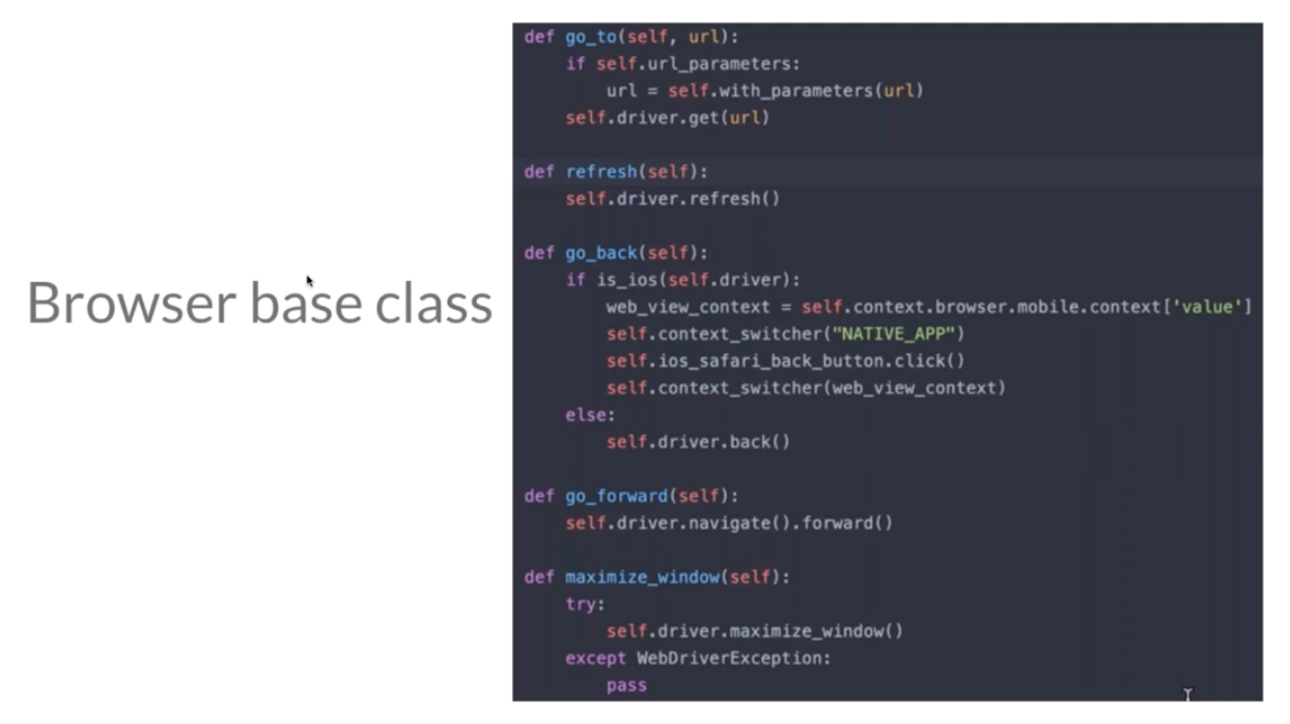 The browser base class provides access for test automation. Using the browser base class eliminates the need to use Selenium embed click.