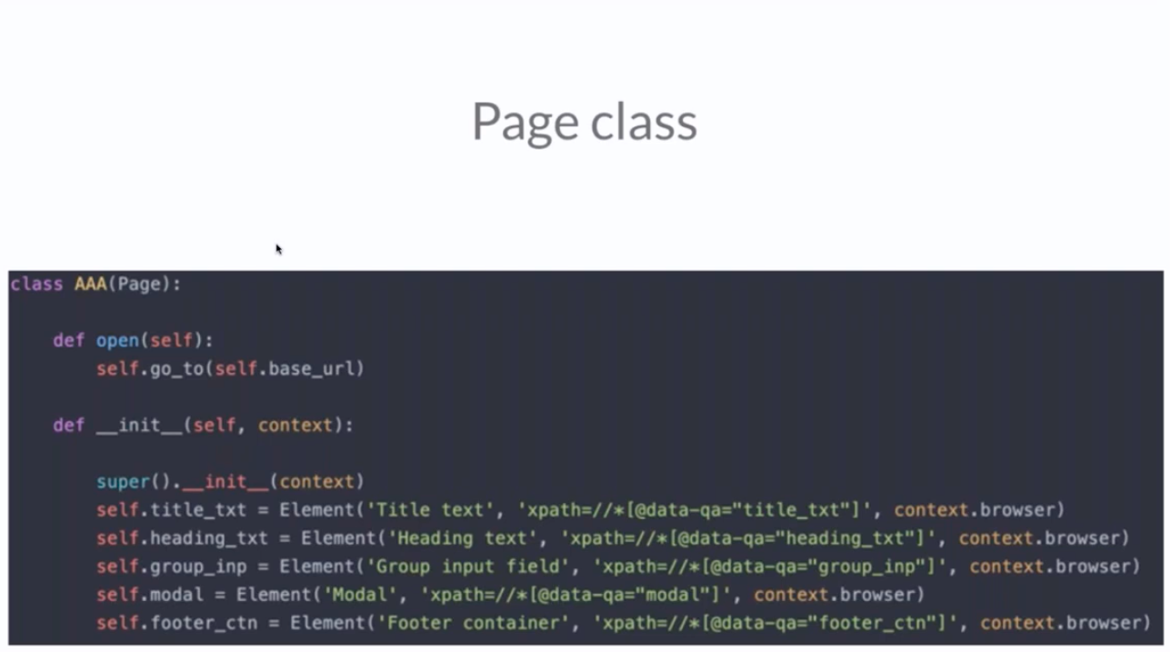 The page class simplifies the web element location. The page class structure assigns a unique XPath to each web element. Automation benefits by having clean XPath elements for automation purposes.