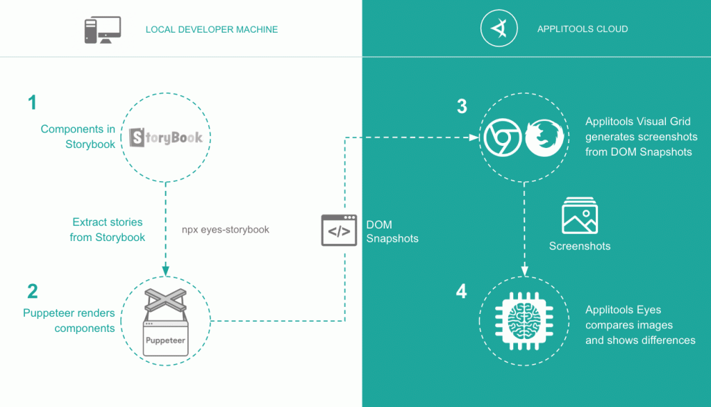 You run an npx command, as detailed in this tutorial. Our Storybook SDK then extracts all stories from your Storybook, and renders each component across all visual states. For each rendering, our Storybook SDK then extracts a DOM Snapshot that we send to Applitools Ultrafast Grid.