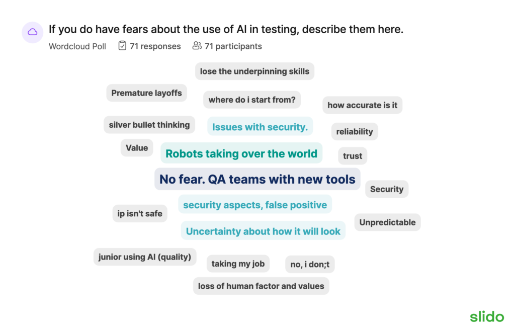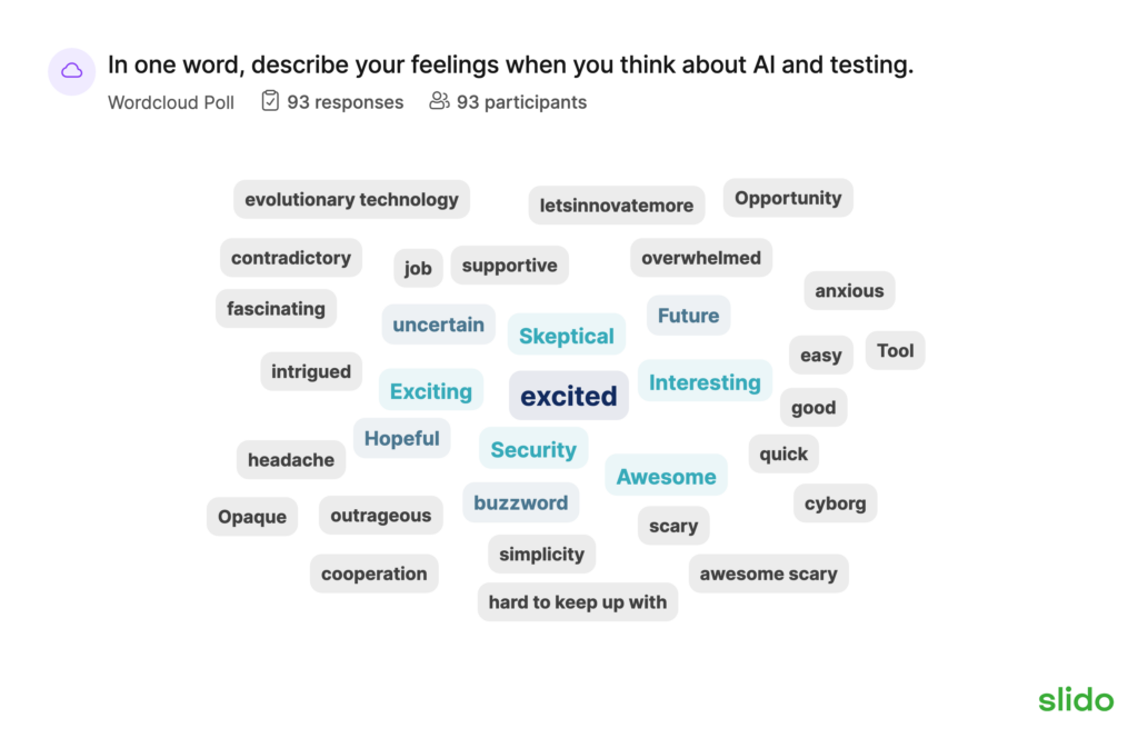 If we are going to be adding all these fantastic AI tools into our tool belts, I feel it’s going to be important we all have a basic understanding of AI. This concern was shared by the attendees. For me, if I’m going to be trusting a tool to do testing for me or generating test artefacts for me, I definitely want that basic understanding. So, that poses the question, where are we going to get this knowledge from?