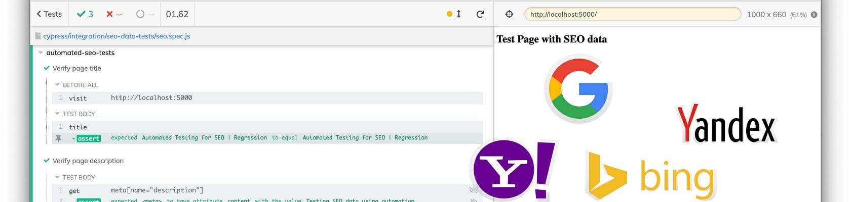 SEO is critical for your website. Learn about automated SEO testing and see how you can use Cypress to validate SEO data like title, description, and JSON-LD structured data.
