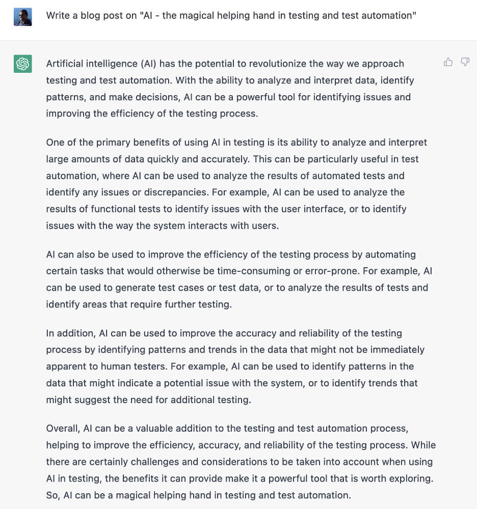 Instead of thinking and typing this blog post, I could have used ChatGPT to generate the post for me as well.