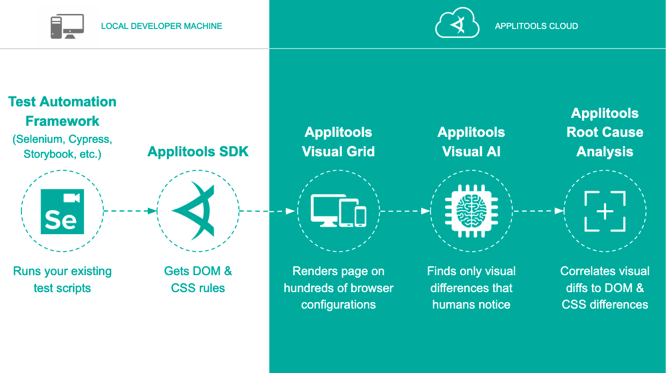 Alternatively, you can use an automated visual comparison tool that uses Visual AI technology. Visual AI technology – the same technology used in facial recognition and self-driving vehicles, has much greater accuracy for this purpose. Do you have a tool that uses Visual AI technology?