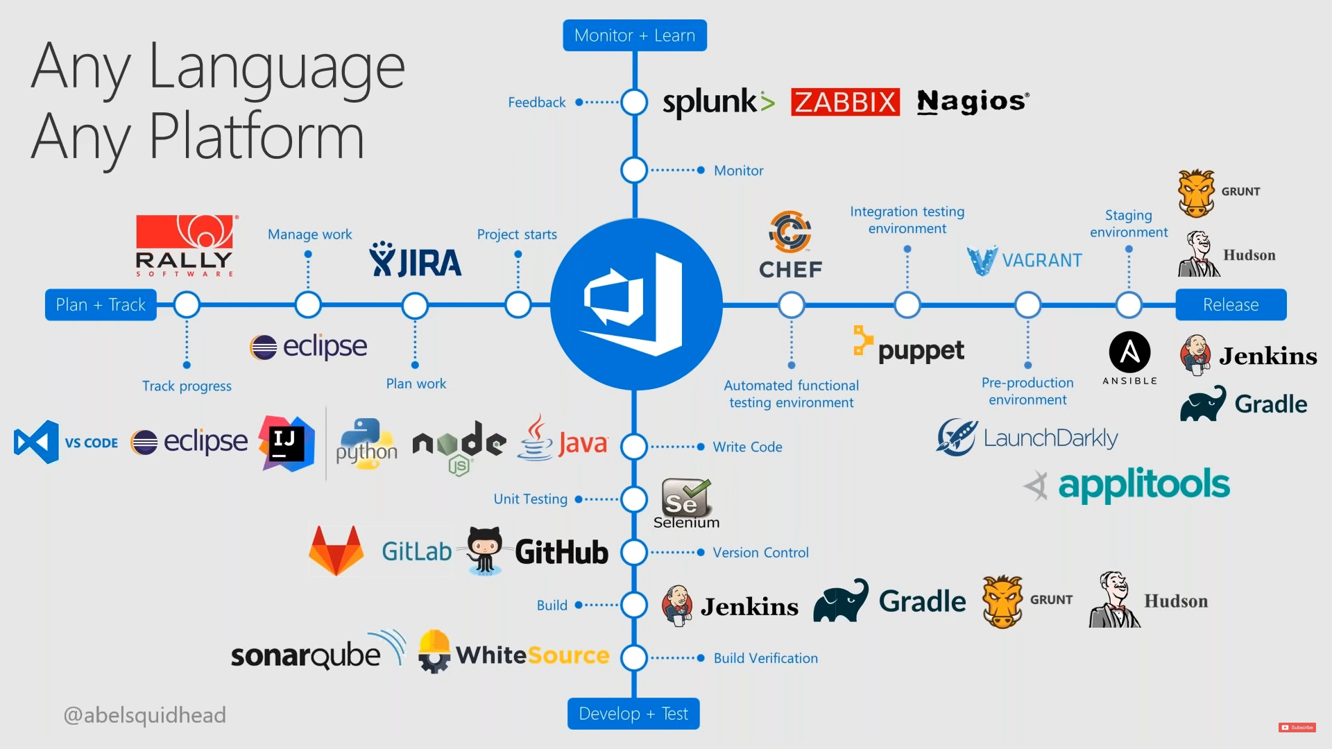 So, anyone in any CI-CD solution requires flexibility, quality, speed, and reliability. That clearly violates conventional wisdom. Microsoft maps out all the potential capabilities needed, and software tools to use, in a map like this: