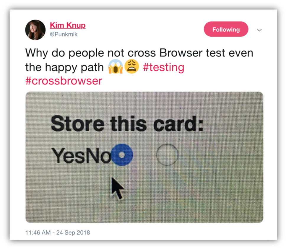 But the worse part of it all is that the return on investment is really low. I hardly find any cross-platform bugs using this approach. And it’s not because they don’t exist. It’s because most cross-platform bugs are visual bugs!