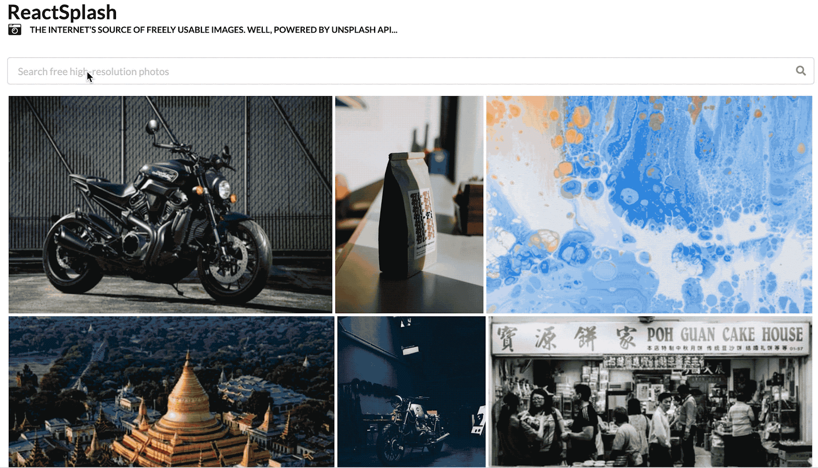 Since we are using the unsplash API, we don’t have control as to what data gets returned. When we refresh the app, we might get different results. As an example, the request that I am making to unsplash will get the popular photos on a given day. If I reran my test again tomorrow, then the images will be different like the one shown below.