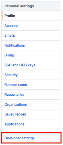 3. Go to Developer settings on the left side menu, all the way on the bottom:
