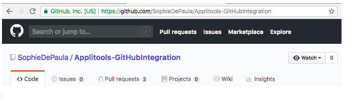 - GitHub Repository Name – You can find the name of any particular GitHub repo at the top of its page. In the example below, the repo name is Applitools-GitHubIntegration.