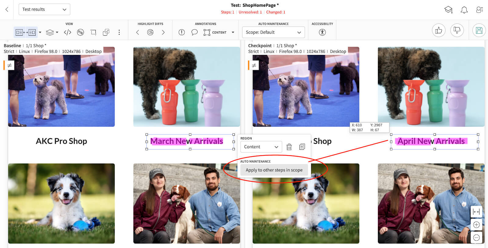 - One of the unique and cool features of Applitools is the power of the automated maintenance capabilities that prevent the need to approve or reject the same change across different screens/devices. This reduces the overhead involved with managing baselines from different browsers and device configurations.
