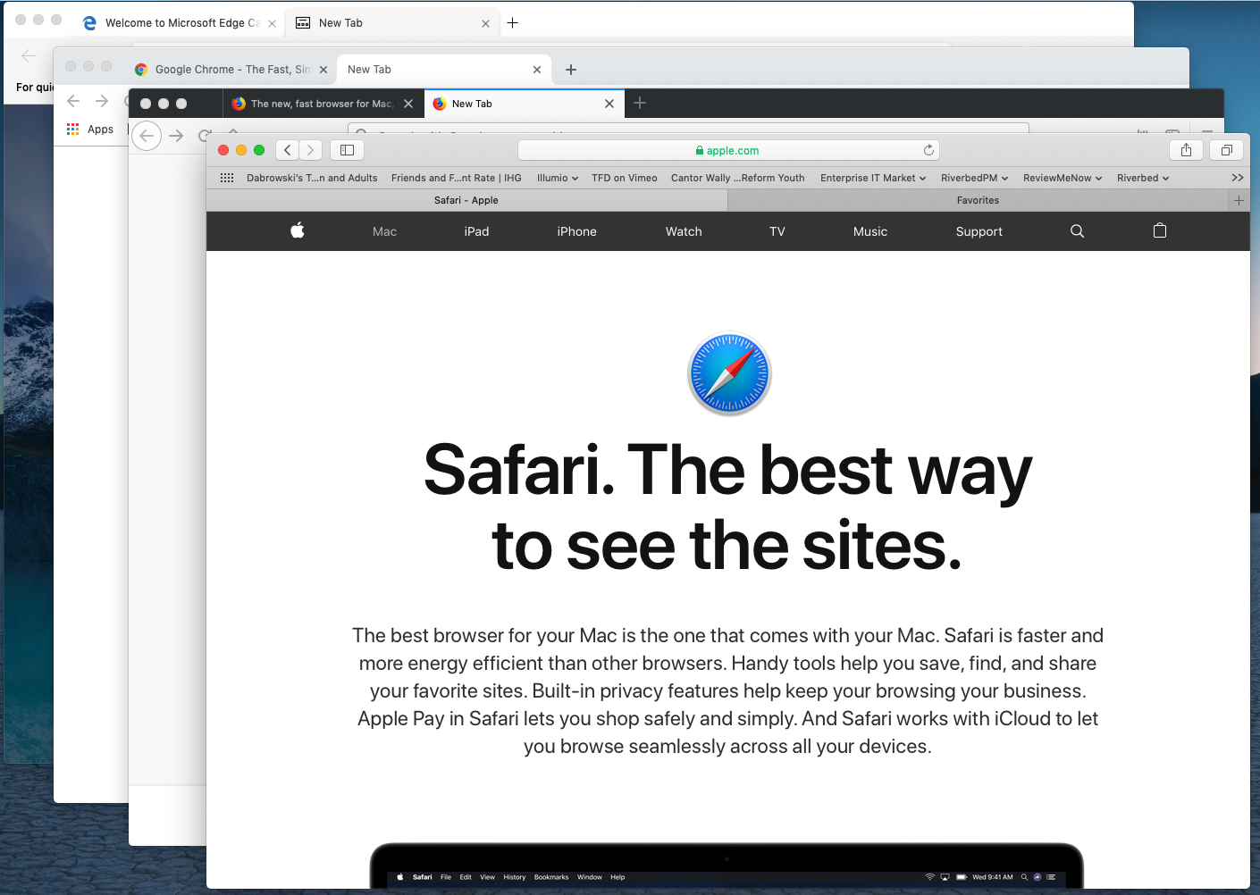 - 5 popular browsers: Chrome, Firefox, Internet Explorer (Windows only) Microsoft Edge (Windows Only), and Safari (Mac only).