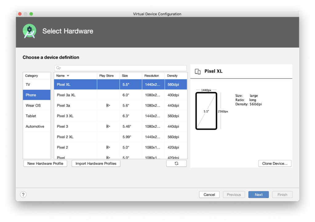 Click the + Create Virtual Device button.