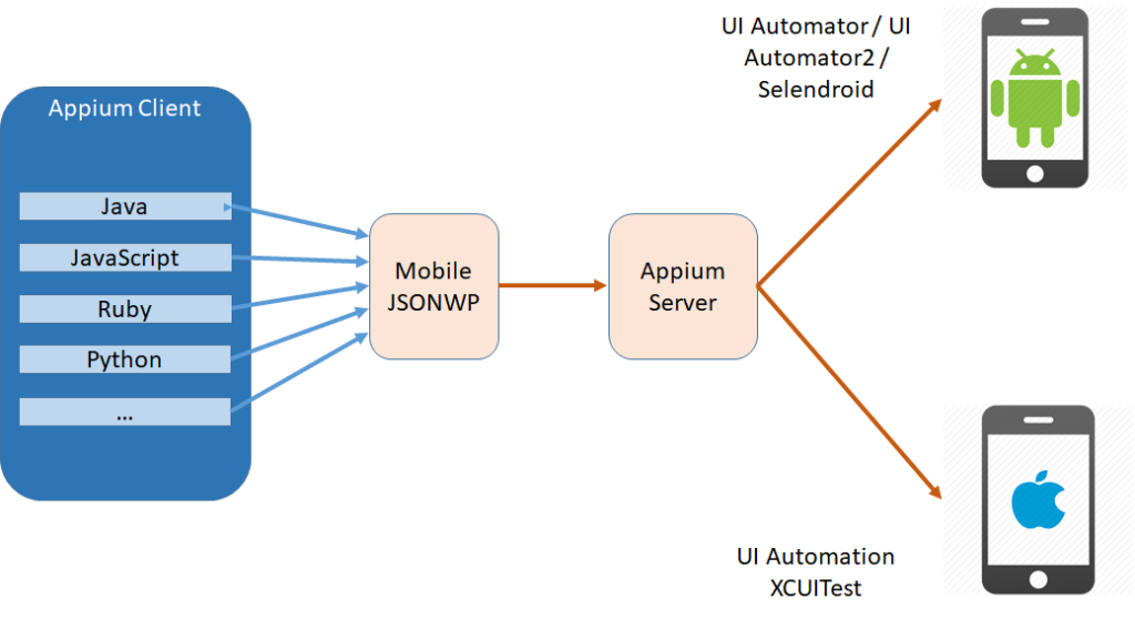Being a Node.js HTTP Server, it works in a client-server architecture. Figure 2 below depicts the Appium Client-Server Architecture model: