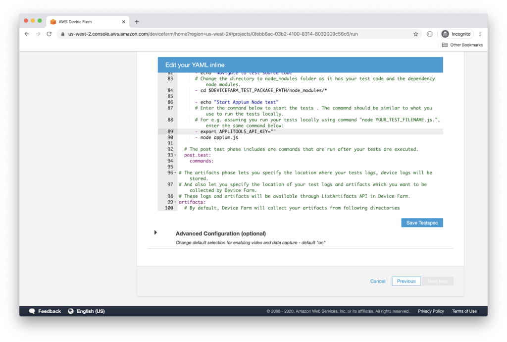 Run the Visual UI Test Script on AWS Device Farm