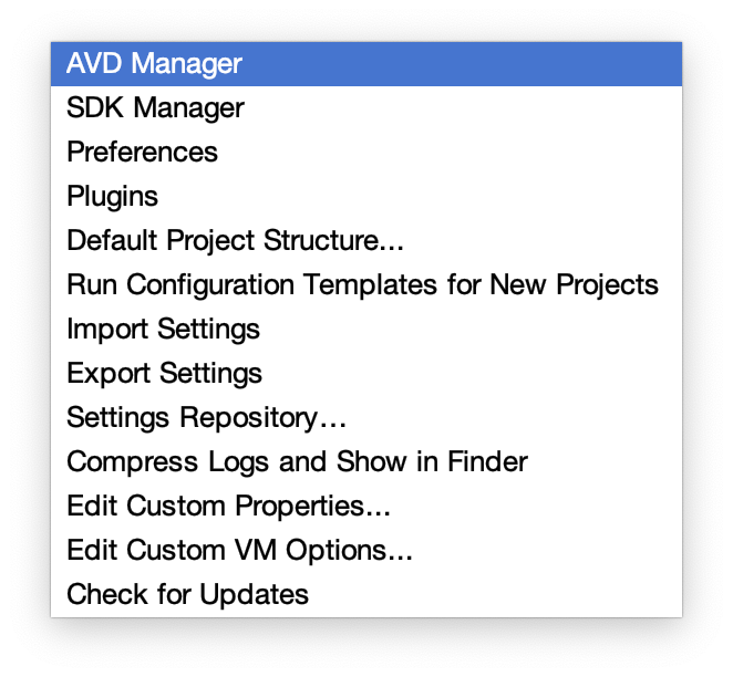 Select the AVD Manager menu item.