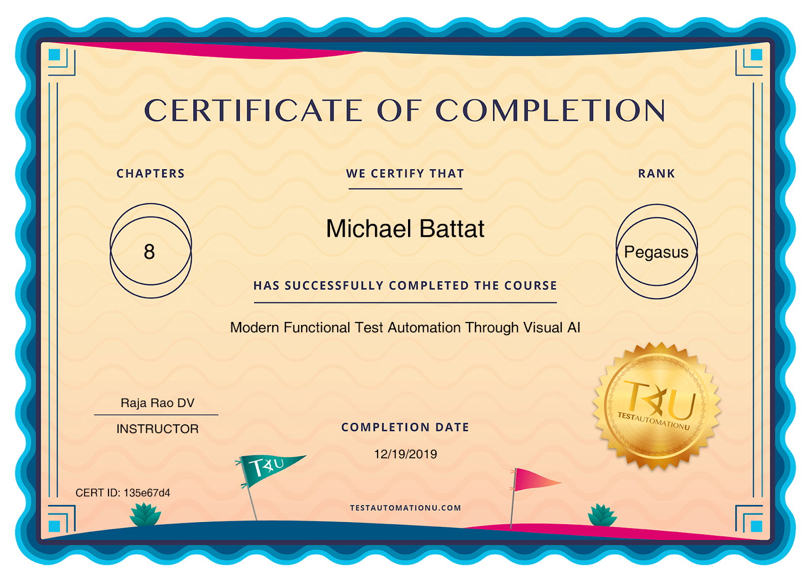 I started taking Raja’s course as a way to figure out what you would experience if you were to take the course. As an Applitools team member, I know more than a novice – but I don’t have all the experience that some test engineers bring to application testing.