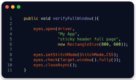 It’s a good practice to create a wrapper class that isolates the Eyes API calls so that if there are any changes to the API, the required changes to the test code will be limited to an individual class.