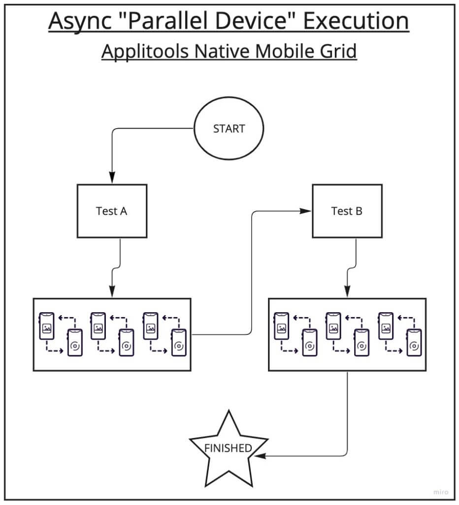 What this means is the parallelization of devices is handled on the Applitools NMG. Since it’s asynchronous you are not waiting on the device to connect or the test results, which frees your tests to execute as fast as possible!