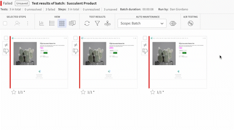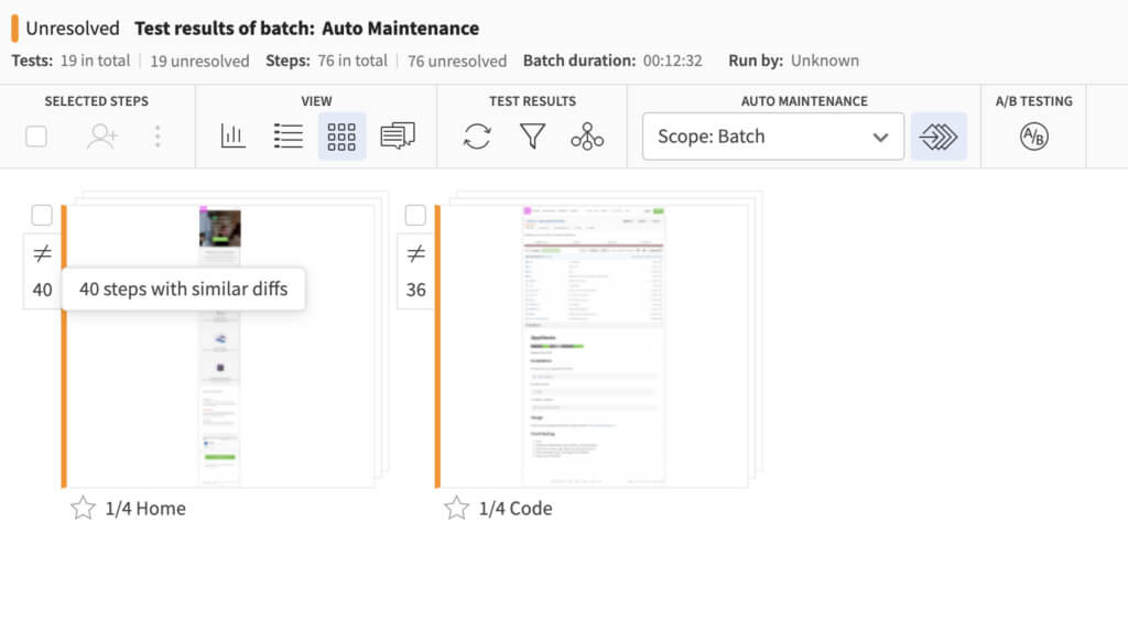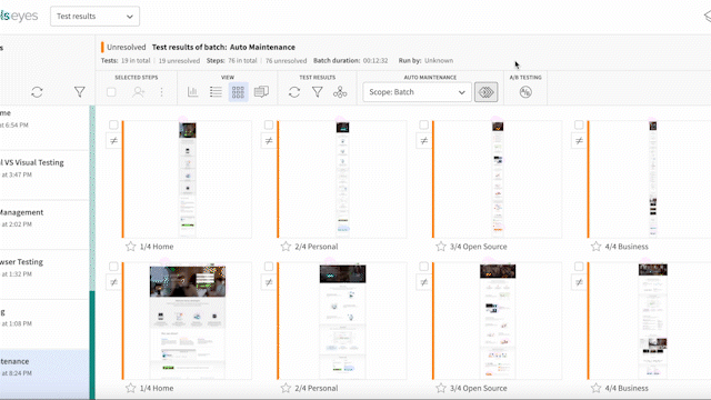 Again, taking a look at the above example, if we accepted a new baseline on one browser, we’d have to accept it on the other 19 browsers manually – taking up a ton of time. When a new baseline is accepted, Auto-Maintenance can apply that acceptance across all similar environments saving you hours of writing new tests that would accommodate those new baselines.