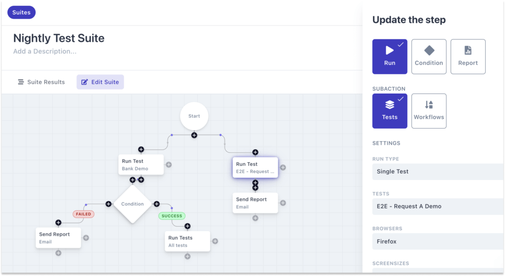 See the status of your tests, diagnose test failures see high resolution screenshots and edit tests with ease.