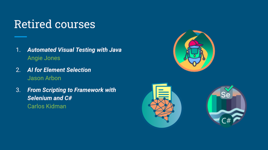 Last year, we published our first refresh courses: Introduction to Robot Framework by Paul Merrill and UI Automation with WebdriverIO v7 by Julia Pottinger. Both refresh courses were well received by our community of students.