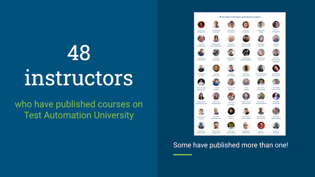 Our courses would be nothing without the excellent instructors who teach them. To date, we have 48 different instructors who have produced courses for TAU. These folks are the real superstars. They are bona fide software testing champions. Let me tell you, it is no small effort to develop a TAU course.
