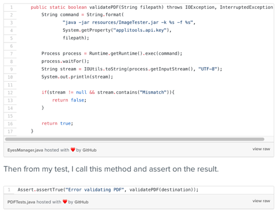 Additionally, the Applitools PDF Tool allows you to easily run visual UI tests on a collection of PDF-files, by placing them inside a directory (see Picture 4). It runs as a standalone jar file and can be invoked as a process by any programming language and in your continuous delivery pipeline.