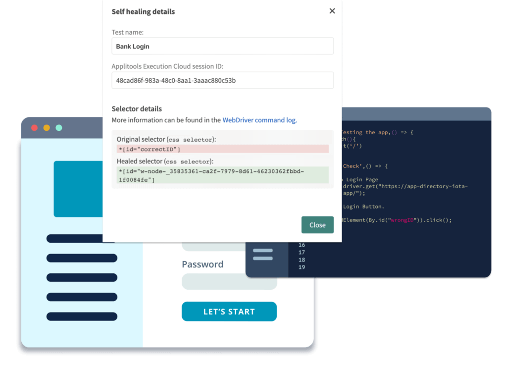 Self-Heal tests that fail due to missing or changed locators will pass using Visual AI.