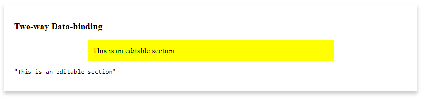 The HTML fragment above renders in the browser as an editable area that users can click and enter any text or HTML.