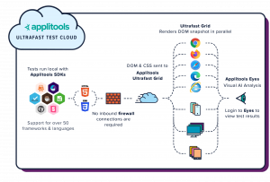 Running code on multiple virtual machines in the cloud takes a lot of time and is flakey due to virtualization overhead. Applitools Ultrafast Grid uses containers to render web pages on different browsers in a much faster and more reliable way.