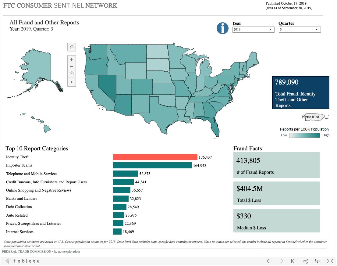 At the radical end of handling dynamic graphical content, some organizations decide that the job doesn’t belong to the internal web development team. These organizations farm out the entire visualization process to a third-party graphing package. For example, the Federal Trade Commission concluded that their data is best visualized using an external solution focused on data graphics and analytics. As a result, they use the services of Tableau Software to create a visual representation of the FTC data.