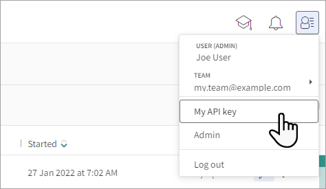at the top right of the window and choose My API Key. Your key will be displayed.