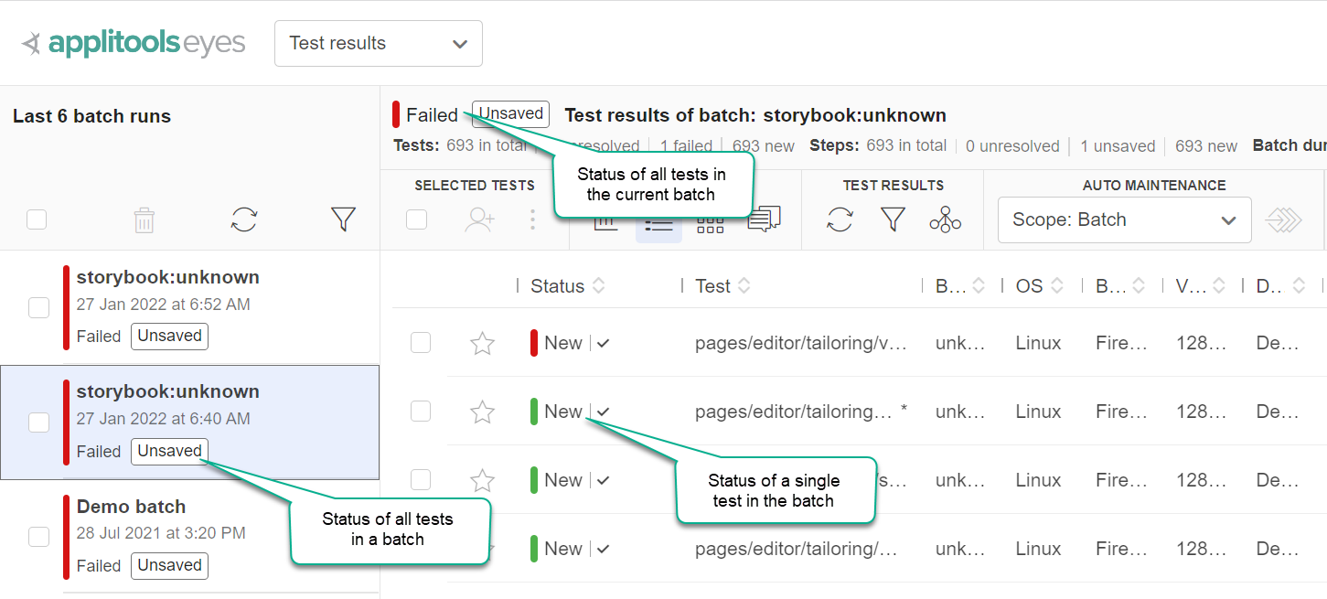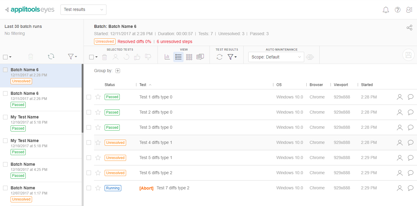 For further information, see our video, A Quick Look at the Applitools Test Results Dashboard:
