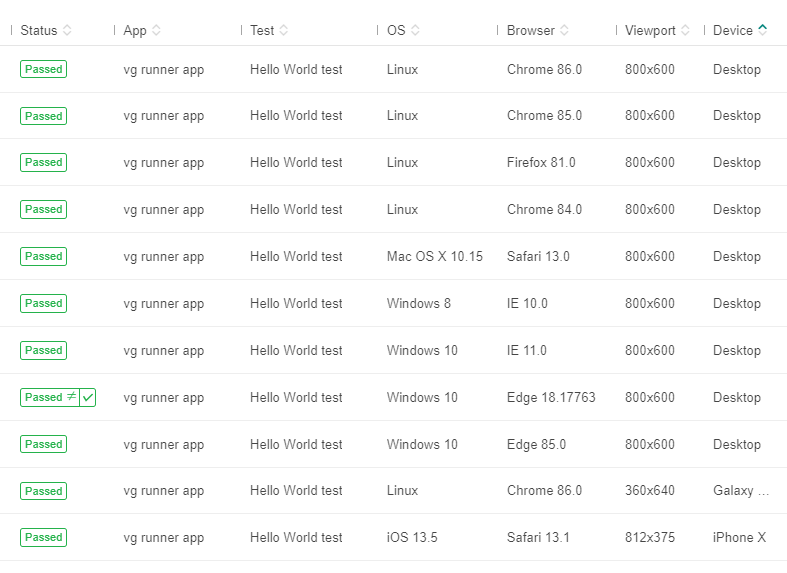 If you run this code, in the Test Manager results you will see one set of test results for each of the desktop browsers and mobile devices that are configured in the test.
