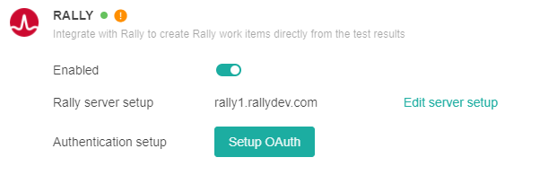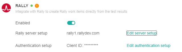 2. Click on the Enabled toggle so that it is in the highlighted (right) state. A team can integrate with either Rally or Jira. If Jira integration is currently enabled for your team, a warning alert is displayed. You must disable Jira before enabling Rally by entering the Jira section on this page and setting the Enabled button to the disabled state.