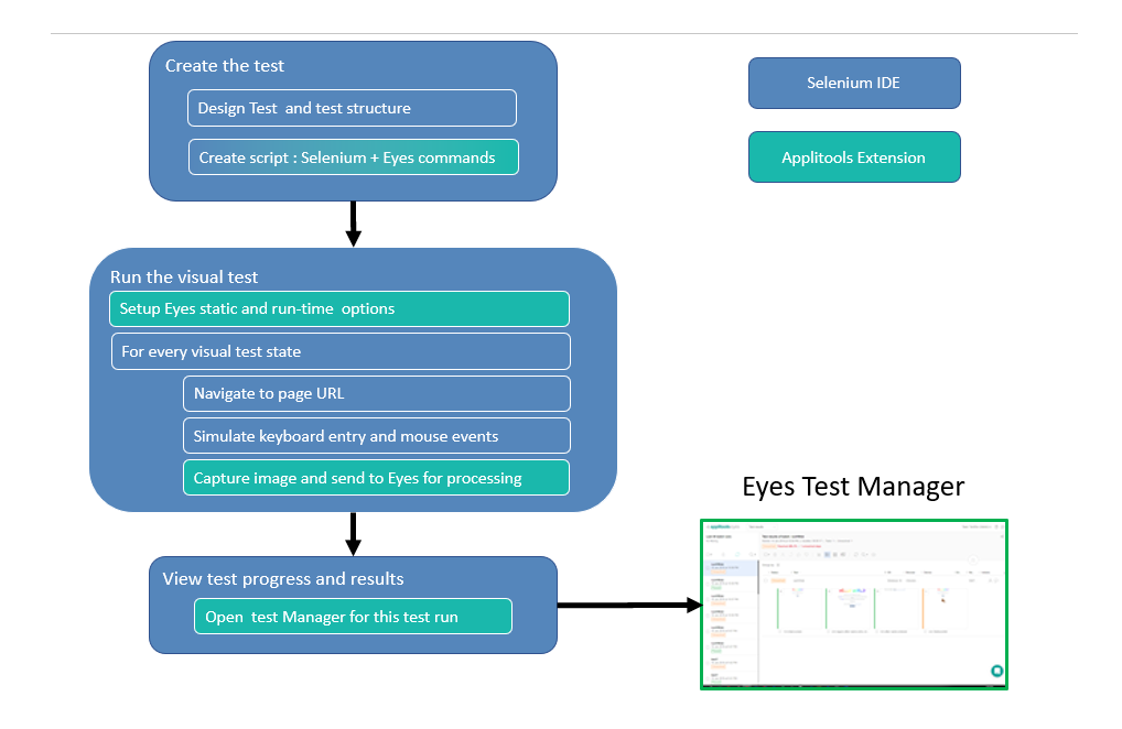 The use of Selenium IDE, together with the SIDE Eyes extension makes it very simple and quick to create test scenarios, add checkpoints in key UI states, run the test and view the results - all without having to write any code. This makes it a useful tool for programmers and non-programmers alike.
