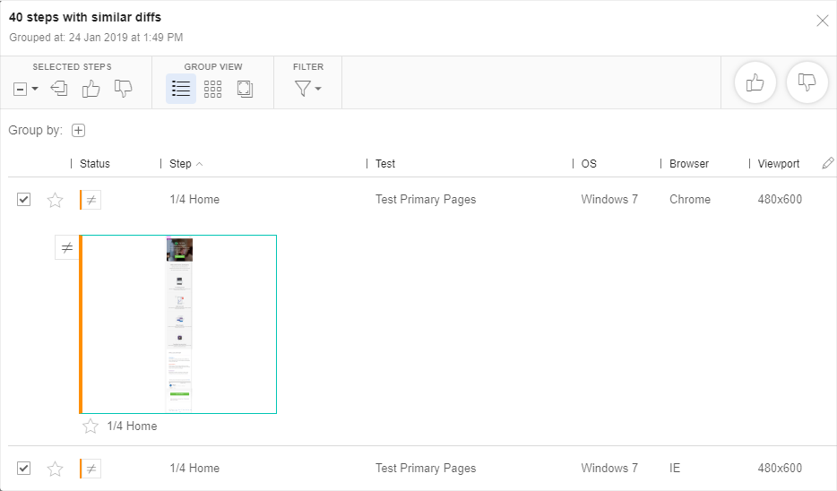 - You use Group by similar differences to collect all steps across the scope where the steps' underlying checkpoint images have the same set of similar differences.