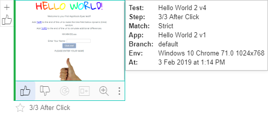 You will find this control on several pages and views. A small thumbnail of either the baseline image or the checkpoint image . Other information is also displayed when you hover over a thumbnail: